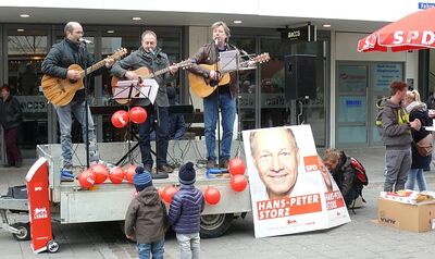 Kurze Reden und viel Musik erlebtend die Teilnehmer der Abschlusskundgebung von Hans-Peter Storz in der Singener Fußgängerzone. Für die Musik sorgte der Abgeordente selbst, denn auf der Bühne stand die Boy-Group, wie sich das Trio aus Reinhard Zedler, Tobias Volz und Storz mit einem Augenzwinkern nennt.